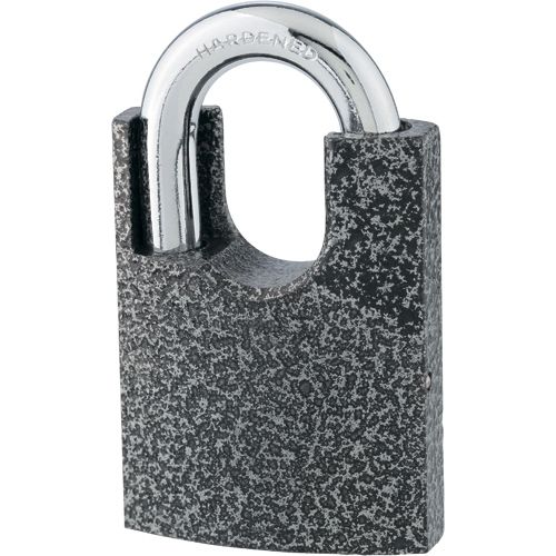 - Устойчивость к повреждениям и климатическим воздействиям — корпус выполнен из углеродистой стали и покрыт молотковой эмалью, стальная дужка хромирована.