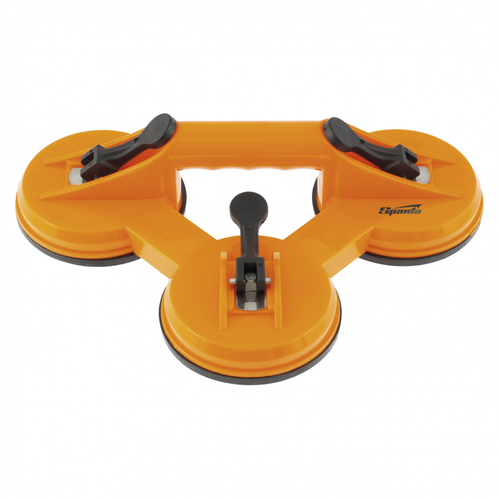 Тройной пластиковый стеклодомкрат Sparta 875156 — устройство для удержания, переноски и установки зеркал, стекол, столешниц, кафельной плитки и других гладких материалов. Три вакуумные присоски имеют зажимы, которые бережно, но крепко фиксируют их на поверхности. Стеклодомкрат будет полезен во время ремонта, а также пригодится в быту.
