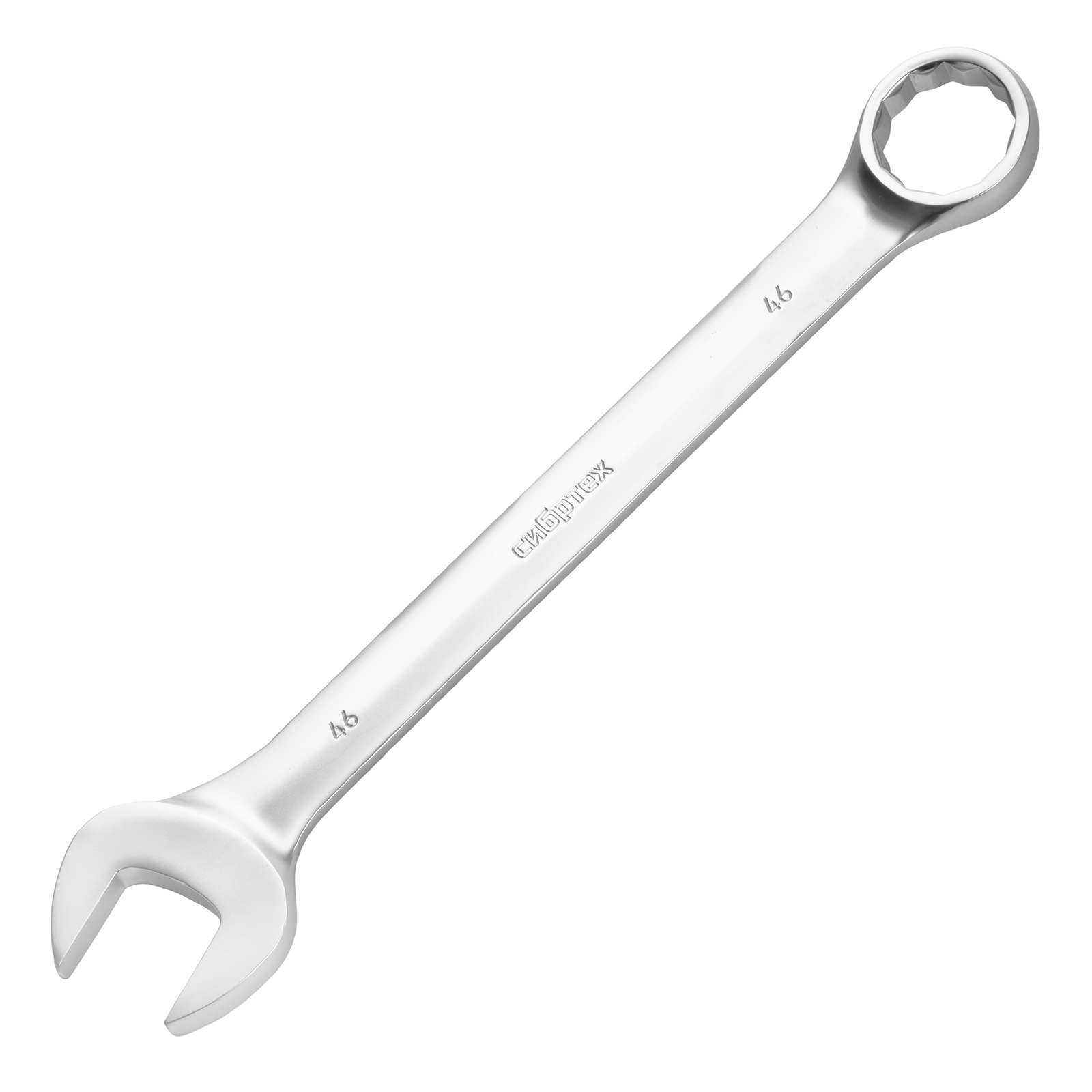 Комбинированный ключ Сибртех 14927 с никелированной поверхностью используется для работы с резьбовым крепежом размером 46 мм. Две рабочие части (рожковая и накидная) расширяют возможности применения инструмента. Кольцевой зев с 12 гранями подходит для работы с болтами и гайками как с шестигранным, так и с двенадцатигранным профилем. Инструмент применяется в автосервисах, на производстве, в строительстве и других сферах, где требуется монтаж крупного резьбового соединения.